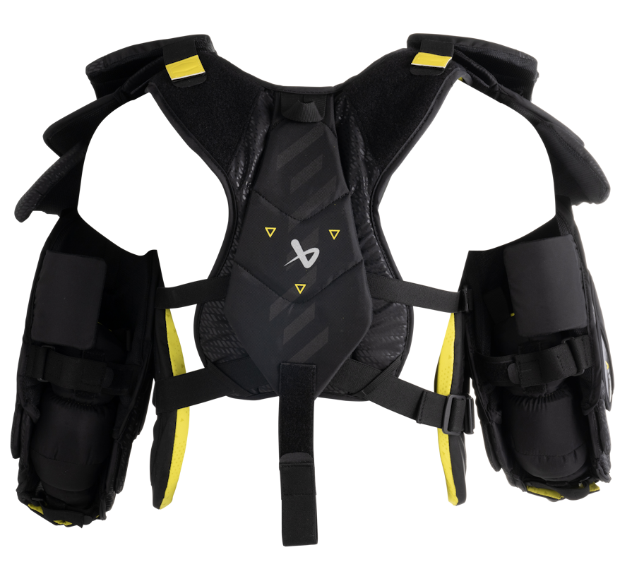 Dla bramkarzy, którzy nie rezygnują z mobilności i ochrony, przedstawiamy Bauer Chest & Arm Supreme Shadow Sr. Innowacyjny hybrydowy system zakładania brzucha pozwala dostosować sposób noszenia ochraniacza klatki piersiowej i ramion dokładnie tak, jak chcesz – schowany, na świeżym powietrzu lub w połowie drogi – zapewniając jednocześnie bezproblemową integrację ze spodniami bramkarskimi. Najnowsza technologia HingeArm 3.0 podnosi mobilność ramion na nowy poziom, bez utraty ochrony. Ponadto system podwójnego przepływu powietrza zapewnia lepszą wentylację, zapewniając chłód i koncentrację przy siatce przez całą grę.