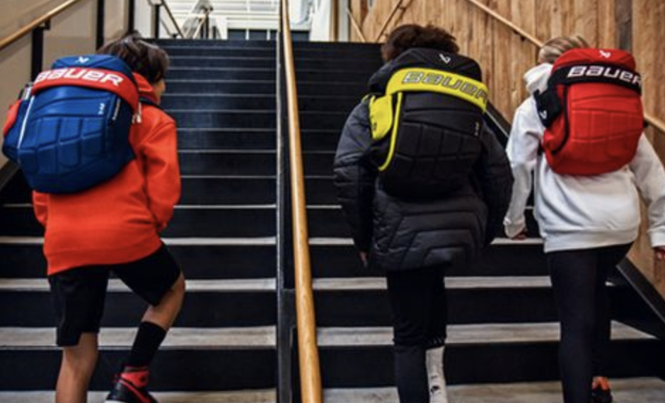 Plecak o unikalnym wyglądzie rękawicy hokejowej, nawiązujący do sprzętu używanego przez profesjonalnych graczy.