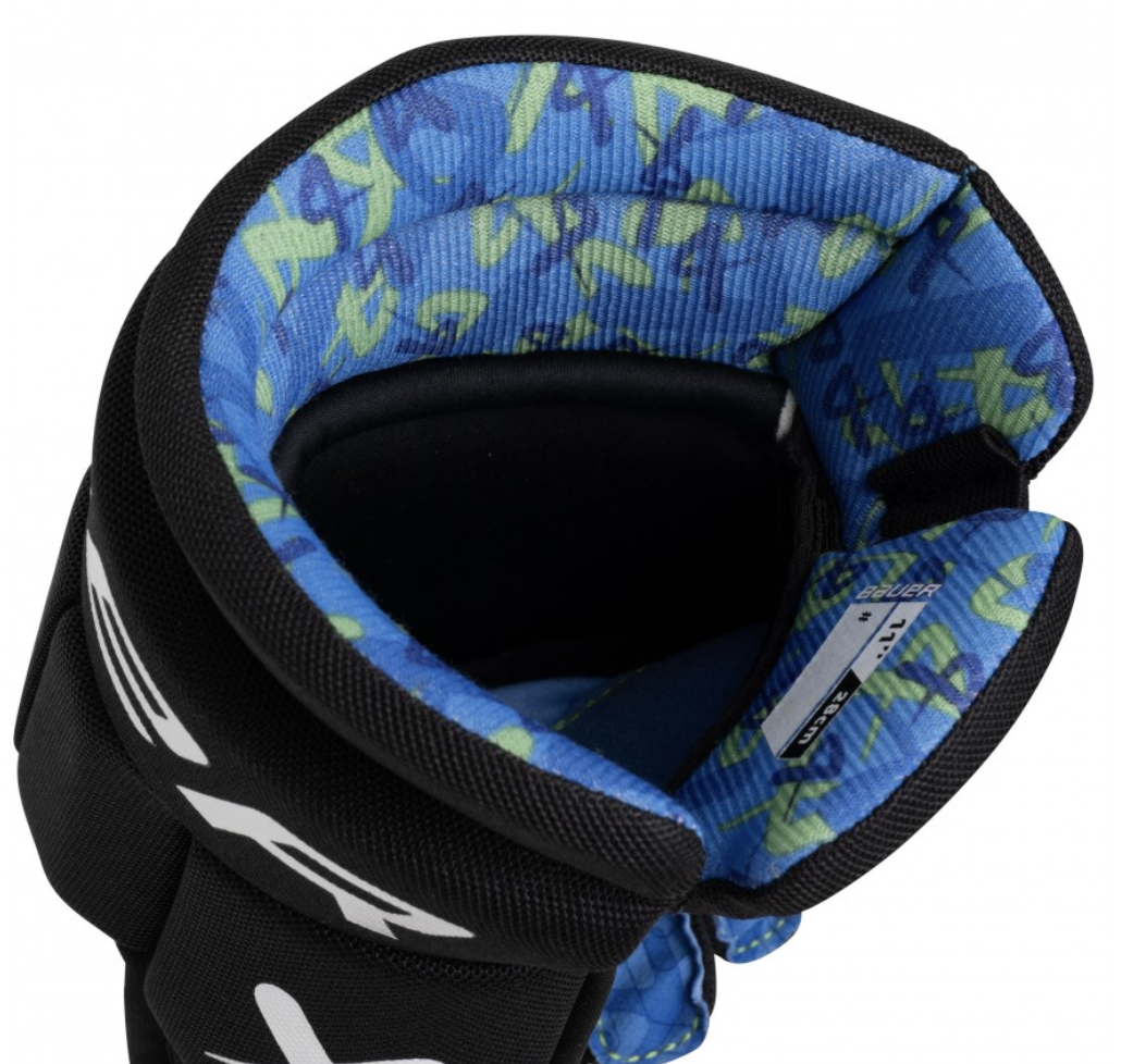 Gracze znajdą natychmiastowy komfort i dopasowanie, co powoduje że ich gra jest luksusowaMateriał zewnętrznyBauer X jest pokryty zintegrowaną powłoką z siatki poliestrowej, która jest lekka i trwała.Konstrukcja palców i ochrona grzbietuBauer X ma tradycyjną, zwężającą się konstrukcję. Oznacza to, że rękawica dobrze przylega do palców i grzbietu dłoni oraz jest otwarta w okolicy mankietu. Palce są chronione pianką o różnej gęstości i wstawkami z PE (polietylenu), które zapewniają dodatkową ochronę w obszarach o dużym kontakcie.