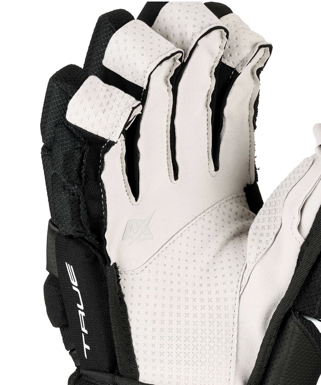 Trzyczęściowy kciuk i palce zapewniają doskonałą mobilność i kontrolę, pozwalając graczom na pewny, pewny chwyt kija. Wnętrze dłoni wykonane w całości z zamszu AX Suede poprawia czucie i trwałość, a wydłużona powłoka na wstawkach na palcach zapewnia lepsze krycie i lepszą ochronę wokół palców.