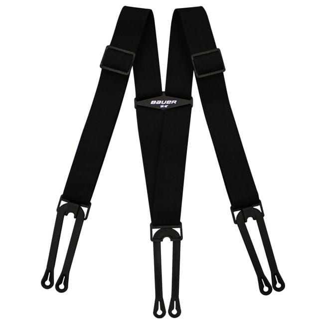 - Standardowe szelki hokejowe w kształcie litery „Y”, które pomagają utrzymać spodnie we właściwej pozycji.