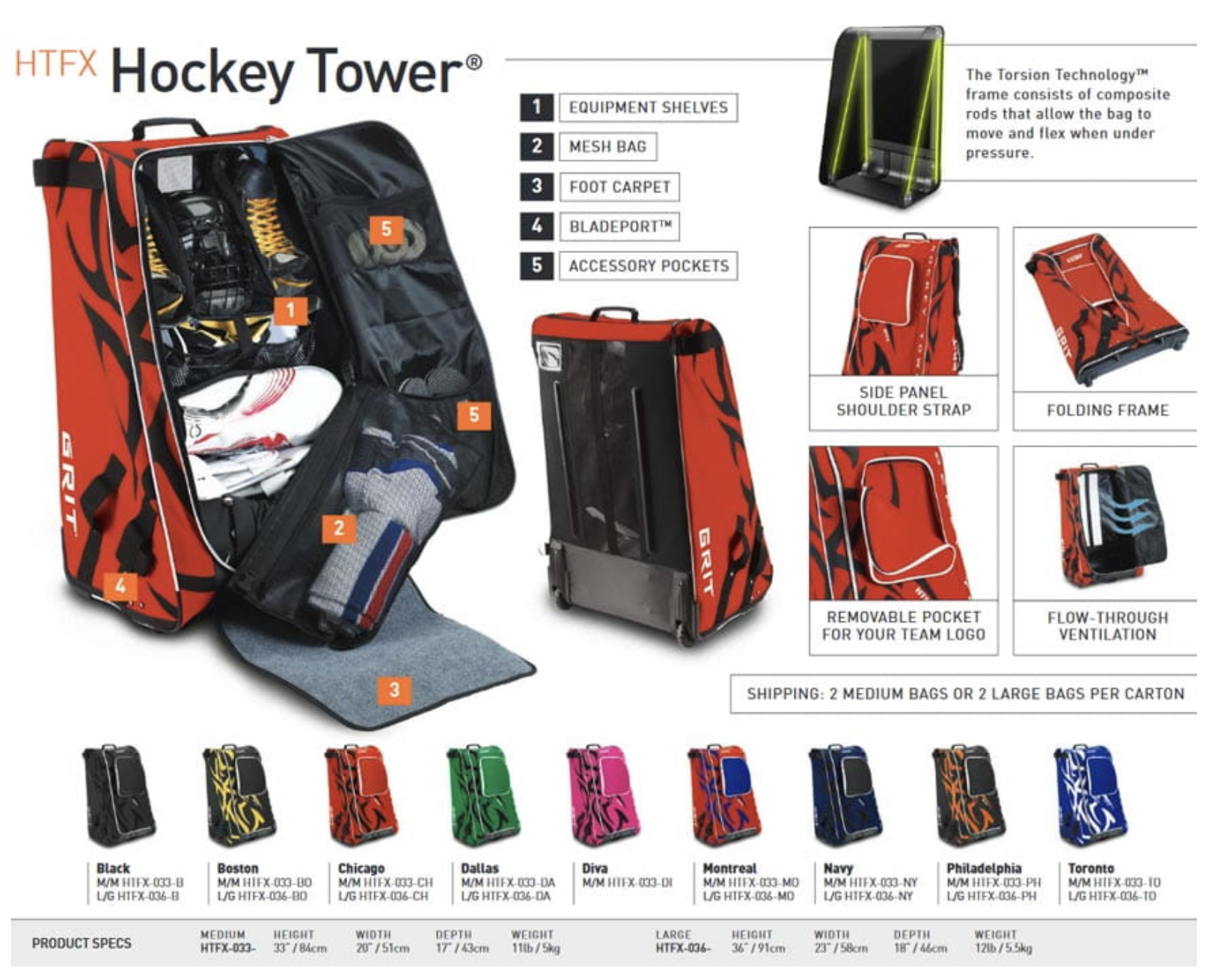 Torba hokejowa Grit HTFX Hockey Tower Senior 36''